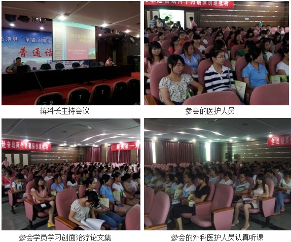 學(xué)術(shù)會議由岳池縣人民醫(yī)院科技科蔣科長主持。參加會議的醫(yī)護人員的來自不同的科室,包括外一科、外二科還有婦產(chǎn)科及內(nèi)科等,總計約100人左右。首先付主任講解了原位再生醫(yī)療技術(shù)的原理,然后展示了原位再生醫(yī)療技術(shù)治療的成果,當同學(xué)們看到再生技術(shù)神奇治療效果的圖片時都報以陣陣掌聲,培訓(xùn)班受到了醫(yī)護人員們的熱烈歡迎。會后大家都感覺受益匪淺,相信此次學(xué)習(xí)班的舉行一定會惠及岳池縣的萬千民眾。