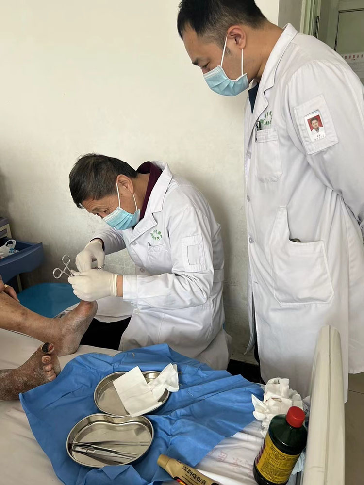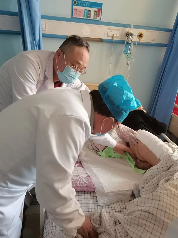 2023年3月27日,應(yīng)南陵縣縣醫(yī)院腦外科萬(wàn)國(guó)武主任邀請(qǐng),中國(guó)中西醫(yī)結(jié)合學(xué)會(huì)燒傷專業(yè)委員會(huì)醫(yī)療部張強(qiáng)主任會(huì)診了幾例難愈合創(chuàng)面患者,現(xiàn)場(chǎng)指導(dǎo)換藥并油紗制作,指導(dǎo)臨床全身用藥。后期還給主任及護(hù)士長(zhǎng)分享了運(yùn)用再生醫(yī)療技術(shù)治療創(chuàng)面的成功病例,講解換藥要點(diǎn),得到大家一致高度認(rèn)可!