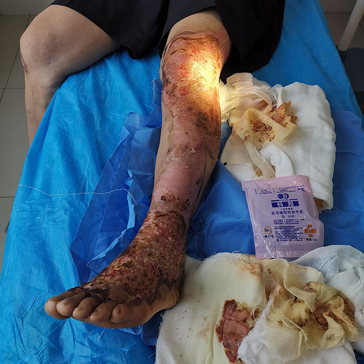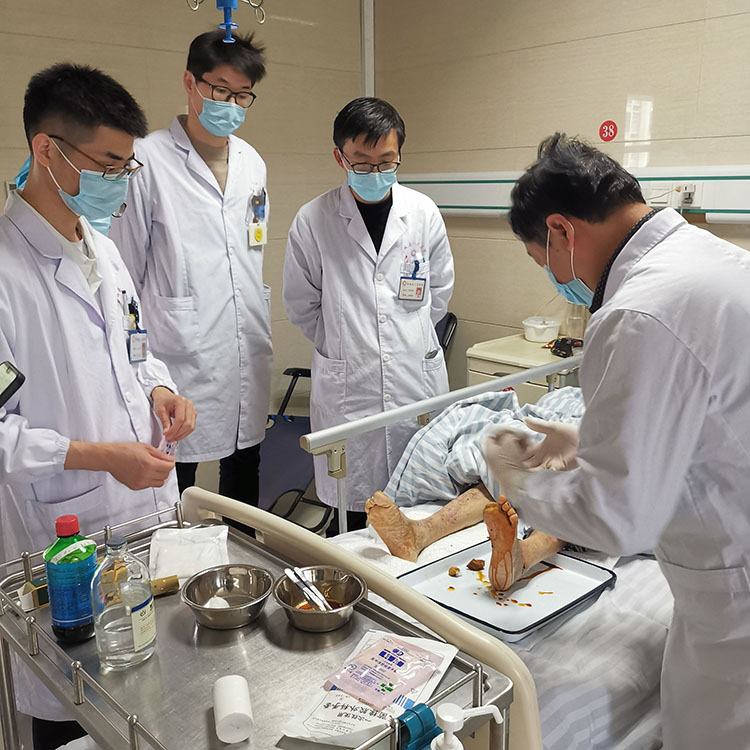 2023年3月28日,應(yīng)蕪湖市第一人民醫(yī)院燒傷科梁其國(guó)主任邀請(qǐng),中國(guó)中西醫(yī)結(jié)合學(xué)會(huì)燒傷專業(yè)委員會(huì)醫(yī)療部張強(qiáng)主任會(huì)診幾例慢創(chuàng)病人,張主任邊換藥邊講解換藥技巧及要點(diǎn),后期還給科室醫(yī)生培訓(xùn)了換藥流程,得到大家的高度認(rèn)可!