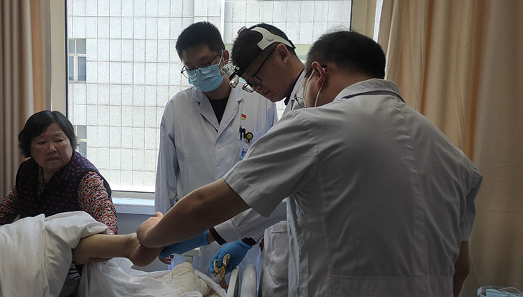 2024年5月8日,《中國(guó)燒傷創(chuàng)瘍雜志》編委、燒傷創(chuàng)瘍?cè)偕t(yī)療技術(shù)臨床專家張強(qiáng),到訪湖北宜昌長(zhǎng)陽(yáng)土家族自治縣人民醫(yī)院甲乳燒傷科,同科室劉勇主任和鄧醫(yī)生等共同會(huì)診一例下肢血管性皮膚潰瘍患者。由于基礎(chǔ)疾病導(dǎo)致下肢動(dòng)脈供血異常,引起了創(chuàng)面久不愈合,造成患者困擾。張主任對(duì)創(chuàng)面做了細(xì)節(jié)處理,就后期換藥提供了建議方案。患者及家屬對(duì)專家的到來(lái)表示感激!