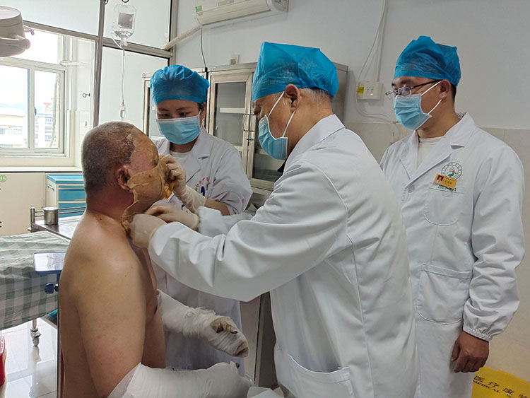 2025年3月29日,《中國燒傷創(chuàng)瘍雜志》編委、燒傷創(chuàng)瘍再生醫(yī)療技術(shù)臨床專家金黨軍,中國中西醫(yī)結(jié)合學(xué)會燒傷專業(yè)委員會醫(yī)療部宋小紅主任,應(yīng)邀到江西省中西結(jié)合醫(yī)院會診了一例糖尿病足患者、一例高齡壓瘡患者。金黨軍主任親自示范再生醫(yī)療技術(shù)換藥流程,強(qiáng)調(diào)了換藥過程中的禁忌和注意事項(xiàng),并交流了綜合治療方案。再生醫(yī)療技術(shù)是中西醫(yī)結(jié)合治療方案的典范,其推廣應(yīng)用將極大造福廣大燒傷及慢創(chuàng)患者。