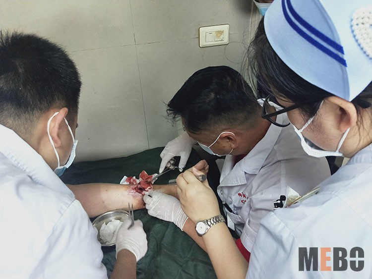 7月9日,中國中西醫(yī)結(jié)合學會燒傷專業(yè)委員會醫(yī)療部專家張強主任,應邀走訪枝江市人民醫(yī)院燒傷科,會診一例49歲男性燒傷患者,患者在6月20日于入院前一小時被鹽酸及其蒸汽燒傷雙手,雙前臂,雙小腿,雙足當時感到疼痛明顯,局部皮膚紅腫伴并有多個大小不等的水皰形成,水皰部分破損有滲出,創(chuàng)面紅潤,伴少許污染物,急診遂以“全身多處燒傷”收住燒傷科。張主任同管床醫(yī)生劉群峰和王帥共同為患者換藥,對現(xiàn)階段美寶再生醫(yī)療技術規(guī)范換藥呈現(xiàn)的理想療效給予了肯定,雙方交流了雙腳創(chuàng)面分泌物及壞死組織處理要點,后期各部位疤痕預防措施等?;颊呒凹覍賹<矣H臨會診及醫(yī)生待患如親的工作態(tài)度再次表示了深深的感謝!