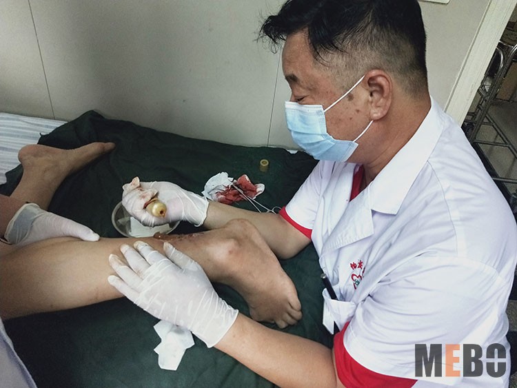 2021年7月8日,應漢壽縣人民醫(yī)院心胸乳甲、燒傷科,劉陽主任邀請,北京榮祥再生醫(yī)學研究所副所長、《中國燒傷創(chuàng)瘍雜志》編委金黨軍來科室對三名慢創(chuàng)及一名燒傷患者進行會診!金黨軍教授詳細講解了再生醫(yī)療技術清創(chuàng)原則和操作要點,親自示范規(guī)范化換藥,并提出合理的治療方案,得到了在場醫(yī)護人員和患者家屬的稱贊。再生醫(yī)療技術是各醫(yī)療單位皆適用的經(jīng)濟、有效、易使用的國際最先進的治療創(chuàng)面的技術,是中西醫(yī)結(jié)合治療方案的典范,其推廣將極大的造福廣大燒傷及慢創(chuàng)患者。