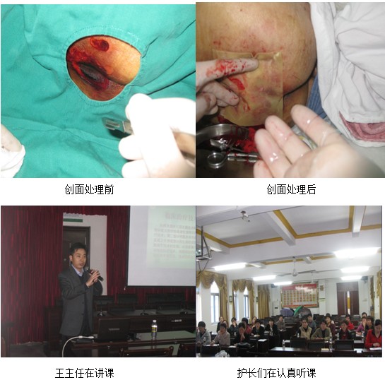 2月28日下午3時,王主任又應邀在該醫(yī)院會議室為該醫(yī)院全院護士長進行了院內(nèi)“再生復原療法難愈性創(chuàng)面治療新進展”學術講座,在學術講座中,王主任結(jié)合臨床圖片對各種難愈性創(chuàng)傷,潰瘍創(chuàng)面的規(guī)范處理方法與技巧做了詳細講解。專題講座結(jié)束后,王主任還就與會的護士長提出的在臨床中常遇到的一些治療技術難題進行了詳細解答。