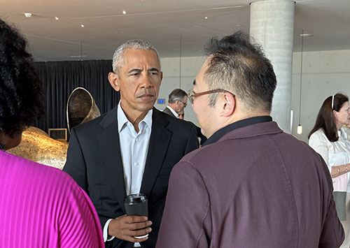 當?shù)貢r間6月22日下午,美寶集團董事局主席徐鵬與美國第44任總統(tǒng)奧巴馬再次聚首于希臘雅典-Stavros Niarchos基金會文化中心。這是奧巴馬總統(tǒng)為奧巴馬基金會長期支持者舉辦的一個小型私人聚會。徐鵬與奧巴馬總統(tǒng)親切交談并向總統(tǒng)請教如何成功舉辦APEC峰會。近二十年來美國只在2008年奧巴馬總統(tǒng)任內(nèi)作為東道主舉辦過一次APEC峰會。而徐鵬目前是舊金山APEC2023協(xié)辦單位灣區(qū)委員會的APEC工作組組長。奧巴馬總統(tǒng)給出了他的經(jīng)驗和建議并予以鼓勵。