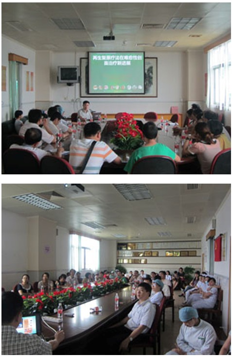 2012年8月6日下午,應(yīng)廣東省中山市三鄉(xiāng)人民醫(yī)院之邀,中國中西醫(yī)結(jié)合學(xué)會燒傷專業(yè)委員會常委兼秘書、《中國燒傷創(chuàng)瘍雜志》副總編輯、北京美寶燒傷創(chuàng)瘍研究所副所長、第二臨床研究部主任王洪生研究員到醫(yī)院做“再生復(fù)原療法在深度燒傷及難愈性創(chuàng)面治療新進(jìn)展”專題學(xué)術(shù)講座。中山市三鄉(xiāng)人民醫(yī)院的外科、骨科、婦產(chǎn)科、ICU醫(yī)護(hù)人員及三鄉(xiāng)地區(qū)的16個衛(wèi)生站的醫(yī)護(hù)人員共計(jì)110多人加了此次培訓(xùn),在學(xué)術(shù)講座中,王主任首先向與會的專家介紹了著名生命科學(xué)家、醫(yī)學(xué)家、人體再生復(fù)原科學(xué)的創(chuàng)立者、再生復(fù)原療法的發(fā)明人徐榮祥教授近年來在再生醫(yī)學(xué)領(lǐng)域所取得的重大實(shí)驗(yàn)及臨床研究成果,而后王主任結(jié)合了大量的臨床病例圖片及錄像資料,主要針對深度燒傷及各類難愈性創(chuàng)傷、潰瘍創(chuàng)面的規(guī)范化處理方法與技巧、注意事項(xiàng)等進(jìn)行了細(xì)致地講解,在座的各位醫(yī)護(hù)均被這神奇的療法折服。會后,醫(yī)護(hù)人員向王主任詢問了臨床上所遇到的問題,王主任一一作了詳細(xì)解答。該醫(yī)院辦公室鄺主任作總結(jié)發(fā)言時,高度贊揚(yáng)了再生復(fù)原療法,稱之為一種為患者帶來福音的一種療法。隨后,應(yīng)外科黎主任的邀請,王主任親自到外科科室對一例燒傷患者和一例老年深度燒傷患者進(jìn)行了會診,并提出治療建議。