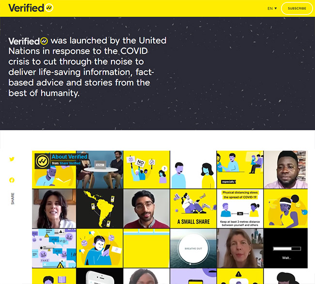 VERIFIED平臺是聯(lián)合國為應(yīng)對新冠肺炎疫情而發(fā)起,旨在改善獲得準確信息的途徑。聯(lián)合國試圖組織一個由數(shù)百萬在線志愿者組成的網(wǎng)絡(luò),在龐雜的信息中提供有關(guān)新冠疫情的科學(xué)信息,并分享真實而美好的抗疫故事。