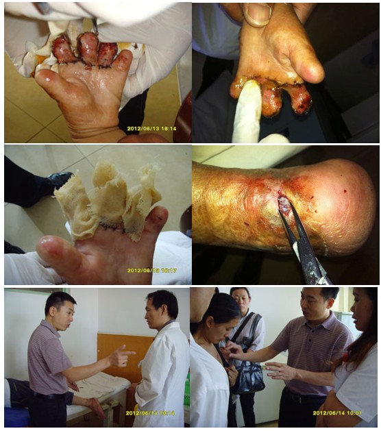 會后數(shù)名醫(yī)生圍著王主任就他們在臨床上的一些棘手的問題向王主任請教,耳鼻喉科的醫(yī)生更是把病人都帶到會場。王主任當(dāng)場指導(dǎo)。當(dāng)日下午講課結(jié)束后及第二天上午,王主任兩次應(yīng)邀到該院骨科、燒傷整形及腫瘤外科去會診,先后為一例骨科創(chuàng)瘍、一例小兒燒傷后并左手指攣縮畸形整形術(shù)后皮片生長不良患兒一例左足跟慢性潰瘍及一例胸部增生性瘢痕患者進(jìn)行了會診及臨床指導(dǎo),醫(yī)務(wù)人員都非常感謝王主任毫不保留的技術(shù)傳授。