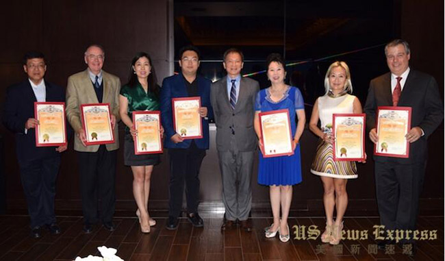 組委會接受表揚狀(左起:馮振發(fā)、麥克萊倫、劉茁、徐鵬、巴格代表吳忠國、李俐、林思妤、歐瑞奇)