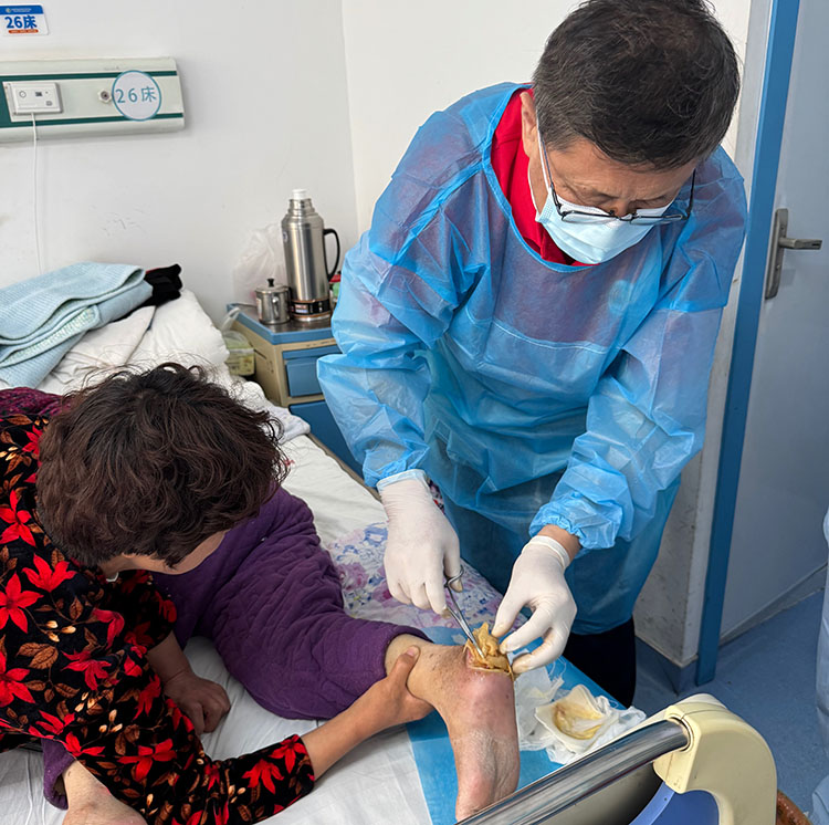 5月16日,中國中西醫(yī)結合學會燒傷專委會常委、濱州醫(yī)學院名譽教授、北京榮祥再生醫(yī)學研究所副所長王洪生教授,醫(yī)療部宋小紅副主任蒞臨茂名油城醫(yī)院普外科開展慢創(chuàng)??平ㄔO及學術交流,受到鐘煥龍主任團隊的熱烈歡迎及高度評價。王洪生教授深入病房,對燒傷、糖尿病足、慢性潰瘍創(chuàng)面患者進行教學查房,指導及示范再生醫(yī)療技術規(guī)范化應用,并結合患者病史及創(chuàng)面特點,分別給予治療建議與方案。