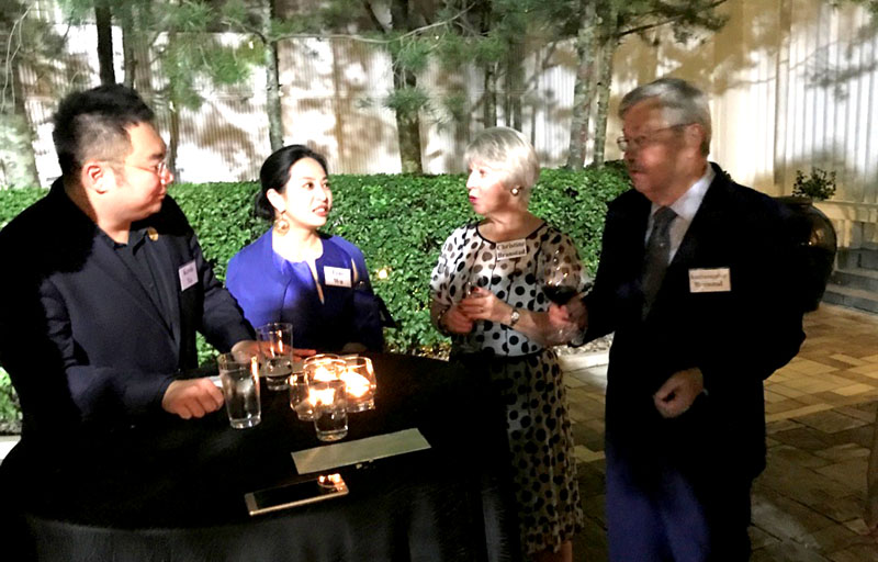 晚宴開(kāi)始前,布蘭斯塔德致辭感謝在場(chǎng)所有對(duì)促進(jìn)中美關(guān)系做出貢獻(xiàn)的工作人員和政企精英,并回顧了他與習(xí)主席友誼的淵源以及他與現(xiàn)任美國(guó)總統(tǒng)的友好關(guān)系。席間大使與夫人特地來(lái)到徐鵬桌上與其暢聊20多分鐘,回顧了雙方數(shù)次見(jiàn)面的友誼之旅,特別是2015年9月22日在習(xí)主席訪(fǎng)美的西雅圖站,時(shí)任艾奧瓦州長(zhǎng)的布蘭斯塔德和加州州長(zhǎng)顧問(wèn)的徐鵬共聚省州長(zhǎng)論壇,當(dāng)時(shí)布蘭斯塔德攜帶了習(xí)主席早年在艾奧瓦州與他的合影老照片請(qǐng)習(xí)主席簽字留念,習(xí)主席收下了但沒(méi)有當(dāng)場(chǎng)簽還。出人意料的是當(dāng)晚的宴會(huì)上習(xí)主席帶來(lái)了簽署其姓名和日期并已經(jīng)裝裱好的老照片贈(zèng)予布蘭斯塔德,令其感動(dòng)萬(wàn)分,這張珍貴的老照片被布蘭斯塔德隨身攜帶,擺放在了其大使官邸的會(huì)客廳中。這件事也深深觸動(dòng)了徐鵬,使其對(duì)習(xí)主席的為人和其領(lǐng)導(dǎo)下的中國(guó)的前途充滿(mǎn)信心。