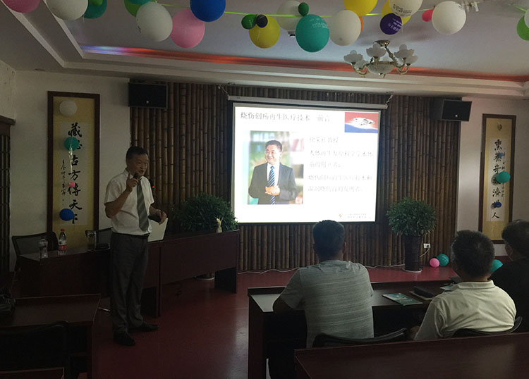 8月22日下午,享受國(guó)務(wù)院特殊津貼的再生醫(yī)療專家付子俊教授應(yīng)貴陽(yáng)市修文縣扎佐林場(chǎng)醫(yī)院及其養(yǎng)老中心的邀請(qǐng),到該院開展“再生醫(yī)療在多學(xué)科的應(yīng)用”培訓(xùn),該院60多名醫(yī)護(hù)人員參加了此次培訓(xùn),該院院長(zhǎng)表示此次培訓(xùn)對(duì)提高該院及養(yǎng)老中心治療難愈性創(chuàng)面的治療方法有積極作用,效果一定會(huì)有大的提高。