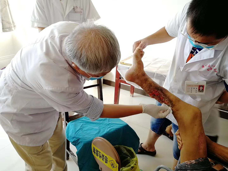 8月24日,由廣東惠州市中醫(yī)院承辦的"慢性難愈合創(chuàng)面基礎(chǔ)研究與臨床應(yīng)用新技術(shù)"培訓(xùn)班在該院十樓學(xué)術(shù)廳舉辦,第四屆中國(guó)中西醫(yī)結(jié)合學(xué)會(huì)燒傷專委會(huì)常委兼秘書、北京榮祥再生醫(yī)學(xué)研究所副所長(zhǎng)、再生生命醫(yī)療技術(shù)委員會(huì)副主任委員、糖尿病足首席專家王洪生研究員應(yīng)邀蒞臨該院,以"再生醫(yī)療技術(shù)在慢性難愈合性創(chuàng)面基礎(chǔ)和臨床研究進(jìn)展及處理要點(diǎn)"為題做專題學(xué)術(shù)講座?;葜葜嗅t(yī)院伍澤鑫院長(zhǎng)致歡迎辭,科教科馮麗萍科長(zhǎng)全程主持學(xué)術(shù)講座,來(lái)自惠州市各級(jí)醫(yī)院50多家醫(yī)院相關(guān)專業(yè)的醫(yī)生300多人參加此次培訓(xùn)班,會(huì)后王洪生研究員還應(yīng)邀到該院骨一科、肛腸皮膚科為1例艾灸致雙足三里部位皮膚三度深型燒傷患者、1例糖尿病足患者,1例大面積四期壓瘡患者,1例骨髓炎患者進(jìn)行會(huì)診和親自示范再生醫(yī)療技術(shù)清創(chuàng)換藥方法,該院骨傷科,肛腸外科,內(nèi)分泌科主管糖尿病足等相關(guān)專業(yè)的科主任、專家、主管醫(yī)生進(jìn)行了現(xiàn)場(chǎng)觀摩。