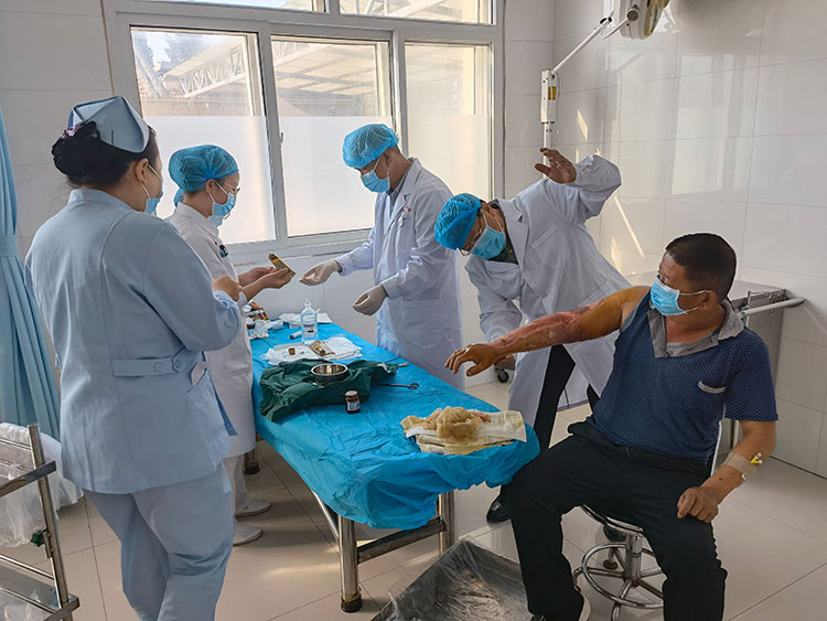 再生專家趙瑞慶教授應(yīng)邀到高平民生燒傷??漆t(yī)院會診燒傷疤痕潰瘍患者
