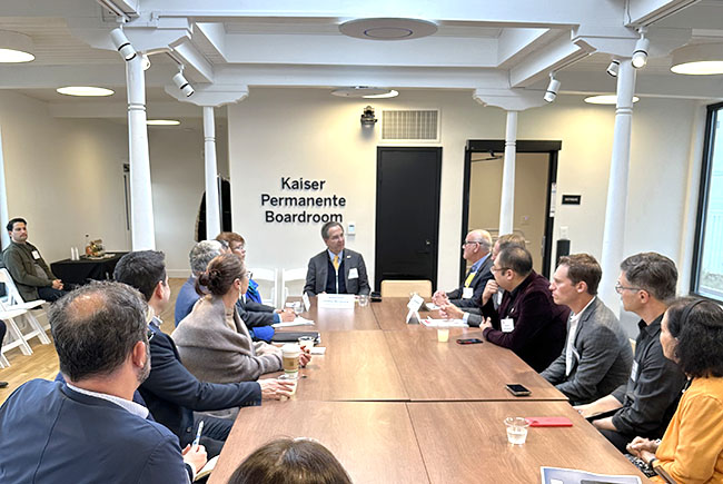 當地時間5月2日下午,在舊金山灣區(qū)委員會總部,美寶集團董事局主席及灣區(qū)委員會執(zhí)行董事兼國際委員會共同主席徐鵬,與灣區(qū)委員會首席執(zhí)行官Jim Wunderman共同會見了到訪的墨西哥駐美大使Esteban Moctezuma Barragán 一行。參與會見的還有灣區(qū)委員會經濟研究院高級主管、前院長Sean Randolph 等人。會談中徐鵬介紹了美寶國際今年啟動的與墨西哥瓜達拉哈拉人民醫(yī)院合作的燒傷臨床研究項目,并表示在生物科技方面美墨雙方有很廣闊的合作空間。大使表示墨西哥與灣區(qū)委員會有很多領域可以加強合作,Jim表示明年灣區(qū)委員會計劃組團去墨西哥考察,加強雙邊合作。雙方并就2023 APEC會議墨西哥的工作準備進行了交流。Jim帶領大使一行上頂層甲板美寶花園游覽并觀賞了灣區(qū)景色。