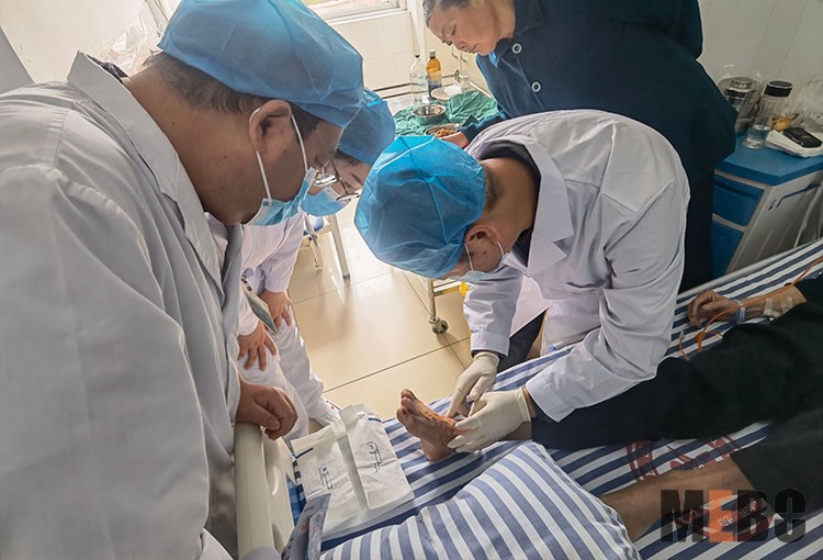 2021年10月21日,北京榮祥再生醫(yī)學(xué)研究所副所長、《中國燒傷創(chuàng)瘍雜志》編委金黨軍教授應(yīng)邀來到遼寧省健康產(chǎn)業(yè)集團(tuán)阜新礦總醫(yī)院手足外科進(jìn)行再生醫(yī)療技術(shù)交流及現(xiàn)場(chǎng)觀摩指導(dǎo),參加本次交流的還有阜新市中心醫(yī)院及阜蒙縣人民醫(yī)院的專家團(tuán)隊(duì),金教授與大家就糖尿病足患者的治療情況及創(chuàng)面科室的發(fā)展情況進(jìn)行詳細(xì)探討,并進(jìn)行了現(xiàn)場(chǎng)實(shí)際換藥操作,受到家屬和全體醫(yī)護(hù)人員的好評(píng)與認(rèn)可。