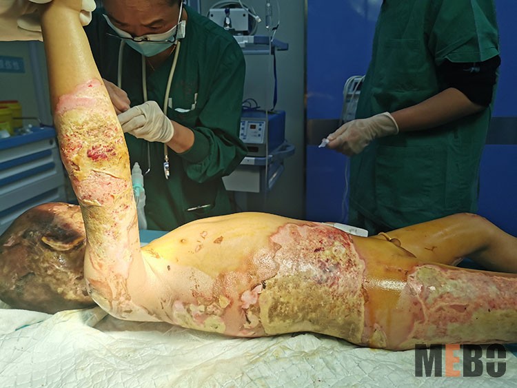 2021年10月21日,貴陽市第五人民醫(yī)院董建軍主任應(yīng)黔西林東醫(yī)院的邀請(qǐng),到該院會(huì)診一小兒大面積重度燒傷病人,并進(jìn)行清創(chuàng)治療,另對(duì)一大面積燒傷病人殘余創(chuàng)面進(jìn)行微粒皮種植術(shù),并指導(dǎo)手術(shù)醫(yī)生取皮,制皮,種植。
