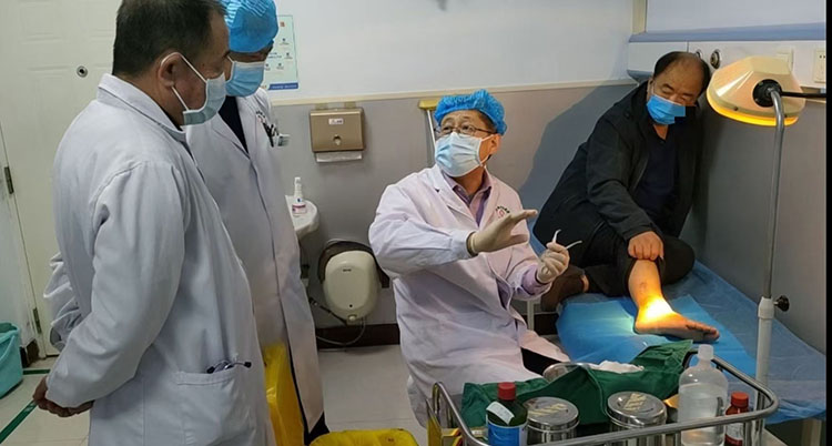 2月13日, 北京榮祥再生醫(yī)學(xué)研究所副所長(zhǎng)、中國(guó)中西醫(yī)結(jié)合學(xué)會(huì)燒傷專(zhuān)業(yè)委員會(huì)常務(wù)委員、《中國(guó)燒傷創(chuàng)瘍雜志》副總編輯、應(yīng)用燒傷創(chuàng)瘍?cè)偕t(yī)療技術(shù)治療糖尿病足領(lǐng)域?qū)<彝鹾樯魅问苎巴綎|省淄博市高青縣人民醫(yī)院,與創(chuàng)傷中心劉主任及其團(tuán)隊(duì)開(kāi)展再生醫(yī)療技術(shù)在壓力性損傷的療效機(jī)理與處理要點(diǎn)專(zhuān)題講座,并結(jié)合住院病例進(jìn)行了現(xiàn)場(chǎng)教學(xué),受到大家一致好評(píng)。
