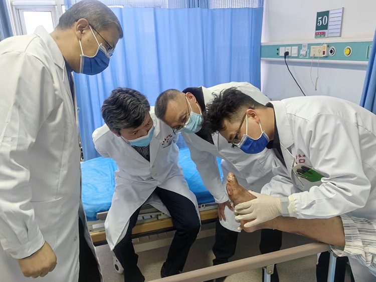 2023年2月18日,再生醫(yī)學(xué)知名專(zhuān)家、《中國(guó)燒傷創(chuàng)瘍雜志》常務(wù)編委趙瑞慶主任應(yīng)邀到長(zhǎng)治市第二人民醫(yī)院(三甲)規(guī)范運(yùn)用再生醫(yī)療技術(shù)會(huì)診4例創(chuàng)面患者,其中一例糖足,一例潰瘍創(chuàng)面,一例動(dòng)脈硬化創(chuàng)面,一例骨折創(chuàng)面,并為劉主任解答了這幾類(lèi)創(chuàng)面的關(guān)鍵處理方法。