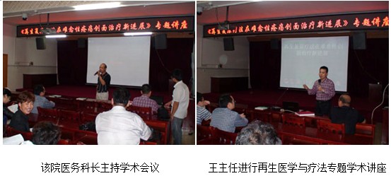 2012年10月29日,應該院邀請中國中西醫(yī)結合學會燒傷專業(yè)委員會常委兼秘書、《中國燒傷創(chuàng)瘍雜志》副總編輯、北京燒傷創(chuàng)瘍研究所副所長、臨床研究部主任王洪生研究員到該醫(yī)院進行“再生復原療法在燒傷及難治性創(chuàng)傷、潰瘍創(chuàng)面治療臨床規(guī)范化應用及新進展”專題講座。講座開始前的當日下午,王主任應邀并在該醫(yī)院醫(yī)務科長兼普外、泌尿、胸外、燒傷外科主任的陪同下首先深入該科病房為1例高壓電燒傷3個月創(chuàng)面不愈的慢性潰瘍創(chuàng)面、1例老年燒傷患者、1例少兒燒傷患者、1例左臀部蜂窩織炎患者、1例左小腿潰瘍患者進行了會診,然后又到該醫(yī)院骨科、神經(jīng)外科病房在該醫(yī)院骨科主任的陪同下為1例糖尿病合并左小腿骨科創(chuàng)瘍患者進行了會診。專題學術講座于當日晚上7點半在該醫(yī)院會議室舉行,該院燒傷科、骨科、普外科、腫瘤科、內(nèi)科、皮膚科和婦產(chǎn)科的相關專業(yè)200余名專家及醫(yī)護人員參加了學術會議。在專題學術講座中,王主任結合了大量的臨床病例圖片,針對不同深度的燒傷創(chuàng)面及各類難愈性創(chuàng)傷、潰瘍創(chuàng)面的規(guī)范化處理方法與技巧、注意事項等進行了細致地講解。在會的醫(yī)護人員看到大量真實的臨床病例資料圖片后,都被再生醫(yī)療技術良好的治療效果所震撼與折服。此次講座深受會者的歡迎,再生復原技術為醫(yī)護人員在臨床上提供了一條新的治療思路,開闊了醫(yī)護工作者的視野,增長了新的知識。