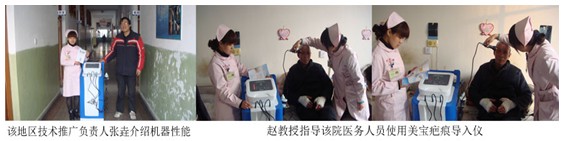 元月中旬剛開完北京總部2012年的工作會議后,中國燒傷瘡瘍研究所副所長趙瑞慶教授了解到山西解放軍282醫(yī)院燒傷科趙興中主任在治療燒傷病人的基礎(chǔ)上,準備在2012年開展治療疤痕項目。在地區(qū)再生醫(yī)學推廣負責人張垚的陪同下,乘車趕往駐地。趙教授向該院醫(yī)務人員認真講解了美寶疤痕儀的機理、操作程序以及美寶疤痕軟膏的功能特點,重點講解了臨床上常見的疤痕分類、疤痕形成的各種因素。采用美寶疤痕儀治療新鮮疤痕,陳舊疤痕的措施?,F(xiàn)場親自指導該院醫(yī)務人員操作,直到完全掌握為止。