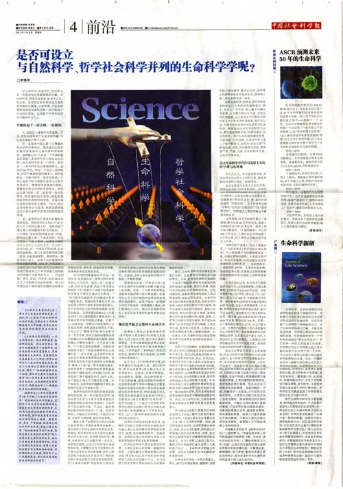 《中國社會科學報》:是否可設(shè)立與自然科學、哲學社會科學并列的生命科學學呢?