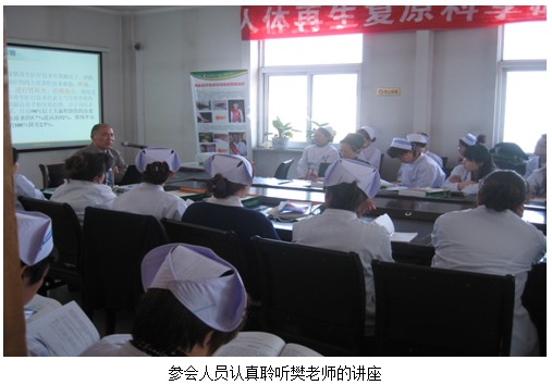 王娥院長在會上表示,醫(yī)院在進入新大樓后要盡快發(fā)展或成立相關(guān)科室。這次學(xué)術(shù)研討也得到了該院業(yè)務(wù)副院長王宏武、醫(yī)務(wù)科長李桂宏的大力支持,會上、會下都展開了熱烈討論,使學(xué)術(shù)交流不斷進入高潮,達到了有效推廣人體再生復(fù)原科學(xué)皮膚再生技術(shù)的效果。