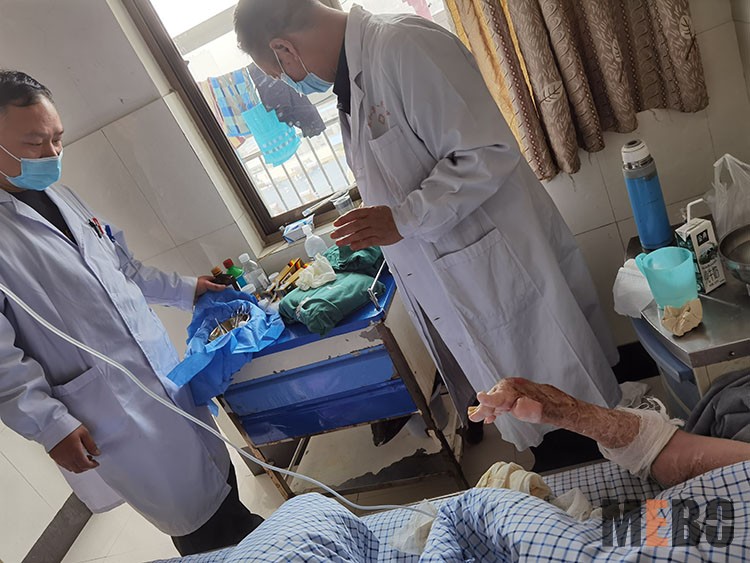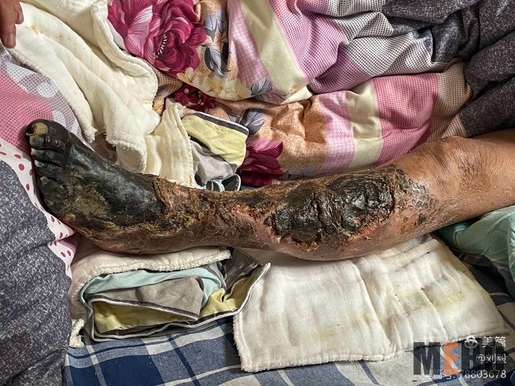 2021年3月31日,聊城市第三人民醫(yī)院的普外科關(guān)中正博士以及牛新芳護(hù)士長,聯(lián)合中國紅十字基金會徐榮祥再生生命公益基金來到聊城地區(qū)進(jìn)行公益義診,利用再生醫(yī)療技術(shù)及其配套產(chǎn)品濕潤燒傷膏為患者清創(chuàng)、換藥。一行人來到聊城市東昌府區(qū)姚堤口村,到曾在聊城市第三人民醫(yī)院救治的一位長期臥床90歲老人的家中,這位患者在住院期間,關(guān)中正博士運用再生醫(yī)療技術(shù)及濕潤燒傷膏為其進(jìn)行治療,后期并為其縫合。