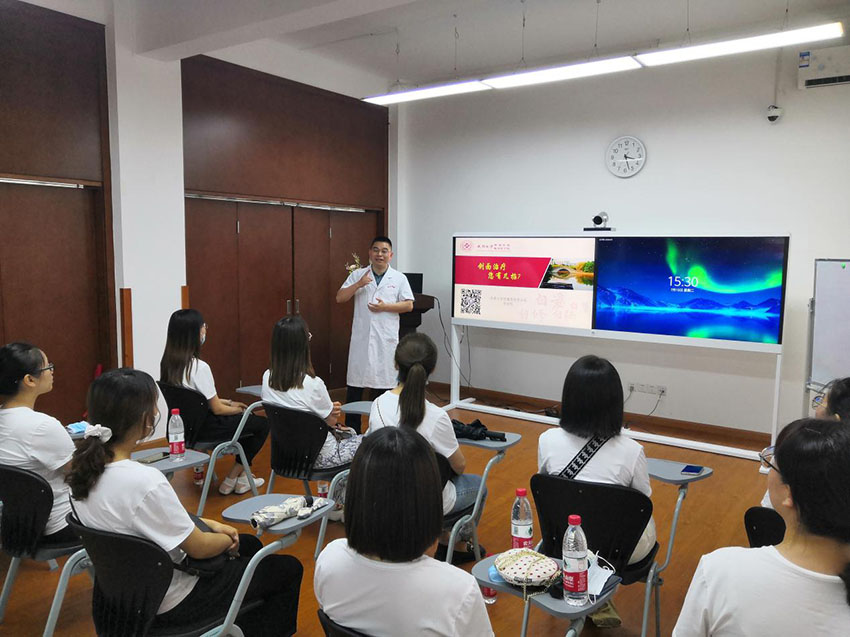 下午一行人來到湘雅三醫(yī)院,燒傷整形科主任,博士生導(dǎo)師周建大教授及燒傷整形科賀全勇教授、燒傷創(chuàng)瘍?cè)偕t(yī)療專家金黨軍教授進(jìn)行了再生醫(yī)療技術(shù)理論講座,美寶國際班師生團(tuán)一行參觀了科室,對(duì)再生醫(yī)療技術(shù)的應(yīng)用和發(fā)展有了更加深刻的認(rèn)知。