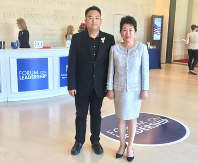 2018年4月18-20日,在美國得克薩斯州達(dá)拉斯市喬治•布什總統(tǒng)中心舉行為期三天的領(lǐng)導(dǎo)力論壇系列活動(dòng),前總統(tǒng)喬治•布什及其夫人勞拉•布什,前副總統(tǒng)切尼及其夫人、前國務(wù)卿賴斯女士、前國會(huì)議長博納先生以及亞馬遜創(chuàng)始人CEO貝佐斯先生等重要嘉賓出席本次論壇。應(yīng)布什總統(tǒng)中心的邀請(qǐng),美寶集團(tuán)董事局主席及國際再生醫(yī)學(xué)與創(chuàng)面修復(fù)學(xué)會(huì)總裁徐鵬先生、美寶集團(tuán)董事局副主席及美國徐榮祥基金會(huì)主席李俐女士也出席了本次論壇,并作為特別嘉賓出席布什總統(tǒng)及切尼副總統(tǒng)各自主辦的小范圍招待會(huì)。本次論壇開幕前一天,喬治•布什總統(tǒng)的母親、美國前第一夫人芭芭拉•布什于17日晚間去世,享年92歲。本次論壇于18日依舊如期舉行,只是來賓胸前都別了一個(gè)小白絲帶表示悼念。