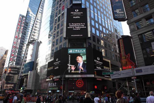 紐約時代廣場大屏幕報道徐榮祥科學中國人雜志封面照巨照