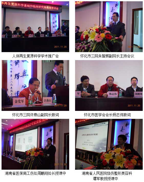 2011年11月20日,由湖南省中西醫(yī)結(jié)合學(xué)會燒傷專業(yè)委員會、懷化市衛(wèi)生局舉辦,懷化市三醫(yī)院承辦的再生醫(yī)療技術(shù)全區(qū)培訓(xùn)在市三醫(yī)院多功能廳舉行,會議由朱副院長主持,邀請的湖南省內(nèi)高級別專家有:湖南省醫(yī)保局工傷處周鵬翔處長、湖南省人民醫(yī)院燒傷整形美容科譚軍教授、湘雅三醫(yī)院燒傷整形美容科彭浩教授、中國中西醫(yī)結(jié)合學(xué)會燒傷專業(yè)委員會臨床部金黨軍教授、湖南省人民醫(yī)院燒傷整形美容科李高峰教授等。他們分別從人體再生復(fù)原科學(xué)、激光美容術(shù)后再生療法應(yīng)用、大面積燒傷的再生醫(yī)療技術(shù)應(yīng)用、再生醫(yī)療技術(shù)的多科室應(yīng)用等方面對再生醫(yī)療技術(shù)進(jìn)行實用技術(shù)培訓(xùn)。其中湖南省醫(yī)保局工傷處周鵬翔處長結(jié)合本職工作及以前的臨床工作經(jīng)驗從三個方面進(jìn)行了闡述,即:引領(lǐng)發(fā)展方向、搶占發(fā)展先機(jī)、學(xué)習(xí)最新技術(shù)。全面闡述了人體再生復(fù)原科學(xué)的基礎(chǔ)發(fā)展和臨床應(yīng)用成果展示。最后,懷化市三院燒傷整形科主任張春喜介紹該院多年來在人體再生復(fù)原科學(xué)的臨床應(yīng)用情況和成果展示。演講者精彩的講座博得了與會者的一陣陣熱烈的掌聲和一致好評。本次與會者有懷化地區(qū)各縣市工傷醫(yī)保局領(lǐng)導(dǎo)、各醫(yī)院相關(guān)科室負(fù)責(zé)人200多人,許多人沒能拿到資料,他們留下聯(lián)系方式,希望以后能夠收到。大會取得圓滿成功??!本次活動得到湖南美寶總裁汪波、區(qū)域經(jīng)理侯效東、區(qū)域經(jīng)理陳立新的大力支持。