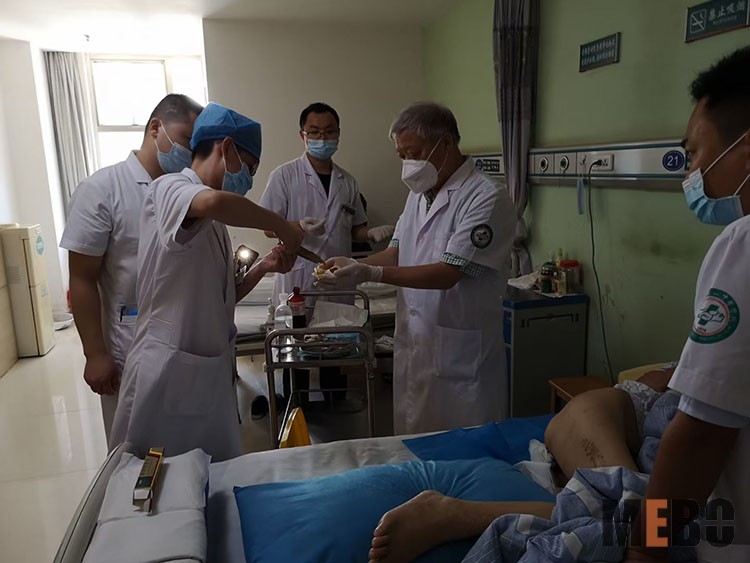8月26日,應(yīng)岳陽(yáng)市中醫(yī)醫(yī)院燒傷創(chuàng)瘍科余正華主任邀請(qǐng),北京榮祥再生醫(yī)學(xué)研究所副所長(zhǎng)、《中國(guó)燒傷創(chuàng)瘍雜志》編委金黨軍來(lái)到科室會(huì)診一高齡燒傷患者,并討論微粒皮種植方案。岳陽(yáng)市中醫(yī)醫(yī)院作為湘北地區(qū)最早使用再生醫(yī)療技術(shù)的基地醫(yī)院,多年來(lái)治愈了大量燒傷及慢創(chuàng)患者。