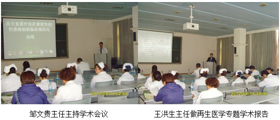 2012年3月20日下午應(yīng)該醫(yī)院邀請(qǐng),中國(guó)中西醫(yī)結(jié)合學(xué)會(huì)燒傷專業(yè)委員會(huì)常委兼秘書、《中國(guó)燒傷創(chuàng)瘍雜志》副總編輯、北京美寶燒傷創(chuàng)瘍研究所副所長(zhǎng)、第二臨床研究部主任王洪生研究員應(yīng)邀來到該院做“再生復(fù)原療法在深度燒傷及難愈性創(chuàng)面治療新進(jìn)展”專題學(xué)術(shù)講座。該醫(yī)院燒傷整形科主任鄒文貴副主任醫(yī)師主持了學(xué)術(shù)會(huì)議,在學(xué)術(shù)講座中,王主任首先向與會(huì)的專家介紹了著名生命科學(xué)家、醫(yī)學(xué)家、人體再生復(fù)原科學(xué)的創(chuàng)立者、再生復(fù)原療法的發(fā)明人徐榮祥教授近年來在再生醫(yī)學(xué)領(lǐng)域所取得的重大實(shí)驗(yàn)及臨床研究成果,而后王主任結(jié)合了大量的臨床病例圖片及錄像資料,重點(diǎn)講述了原位再生復(fù)原技術(shù)的臨床操作規(guī)范,原位再生復(fù)原技術(shù)在創(chuàng)傷,褥瘡,潰瘍等多學(xué)科的應(yīng)用,并從燒傷創(chuàng)面治療難題的再生復(fù)原機(jī)理、解決深度創(chuàng)面的愈合難題機(jī)理、創(chuàng)傷創(chuàng)面治療難題再生復(fù)原機(jī)理、糖尿病潰瘍的再生復(fù)原機(jī)理、組織肢體缺損的復(fù)原機(jī)理皮膚器官原位復(fù)原再生的機(jī)理等幾個(gè)方面以大量的病例對(duì)人體器官原位再生復(fù)原技術(shù)進(jìn)行了深入淺出的講解。會(huì)后和科室主任進(jìn)行了一系列的交流??浦魅握f再生醫(yī)療技術(shù)操作簡(jiǎn)單方便,治療費(fèi)用小,適合各醫(yī)院開展,他們會(huì)把所學(xué)的用于臨床中為病人造福。