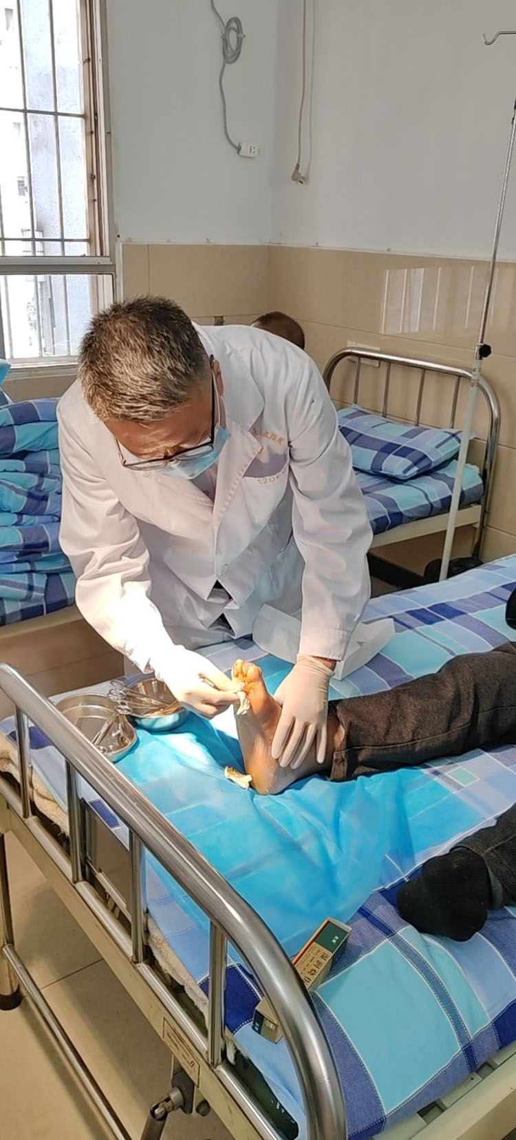 4月6日,北京榮祥再生醫(yī)學(xué)研究所副所長(zhǎng)、中國(guó)中西醫(yī)結(jié)合學(xué)會(huì)燒傷專業(yè)委員會(huì)常務(wù)委員、《中國(guó)燒傷創(chuàng)瘍雜志》副總編輯、應(yīng)用燒傷創(chuàng)瘍?cè)偕t(yī)療技術(shù)治療糖尿病足領(lǐng)域?qū)<彝鹾樯魅螒?yīng)揭西縣第二人民醫(yī)院外一科邀請(qǐng),蒞臨科里會(huì)診一例高齡偏癱康復(fù)期壓瘡患者,并示范規(guī)范換藥流程!之后給科里醫(yī)護(hù)人員授課再生醫(yī)療技術(shù)在慢性創(chuàng)面壓瘡、糖足的治療新進(jìn)展,得到醫(yī)護(hù)人員的高度認(rèn)可,取得了良好的效果!