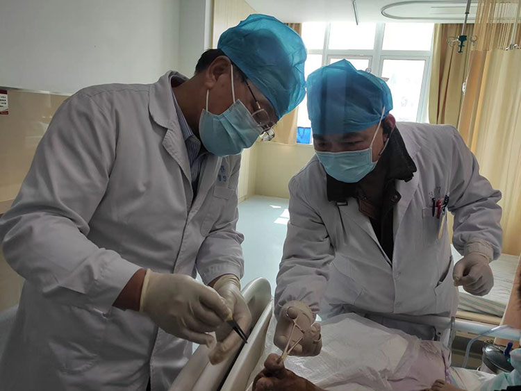 4月6日,應(yīng)科左后旗醫(yī)院邀請(qǐng),北京宣武中醫(yī)院張勇主任來(lái)到在美麗的科爾沁大草原,在醫(yī)院骨外科進(jìn)行再生醫(yī)療技術(shù)學(xué)術(shù)交流活動(dòng)。學(xué)術(shù)交流得到了醫(yī)院領(lǐng)導(dǎo)班子大力支持,會(huì)議由主管院長(zhǎng)張愛(ài)民院長(zhǎng)主持??剖抑魅巍⑨t(yī)生對(duì)再生醫(yī)療技術(shù)臨床療效給予高度認(rèn)可和評(píng)價(jià)!學(xué)術(shù)交流后,張勇主任和醫(yī)院領(lǐng)導(dǎo)一起到科室,為幾例慢創(chuàng)病人會(huì)診和指導(dǎo),張主任親自操作示范換藥,講解規(guī)范換藥細(xì)節(jié),旨在提升慢創(chuàng)救治能力,充分發(fā)揮再生醫(yī)療技術(shù)創(chuàng)面修復(fù)的示范引領(lǐng)作用,最大限度降低慢創(chuàng)患者的死亡率和致殘率,確保慢性患者得到高效的救治。