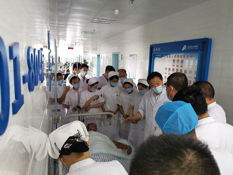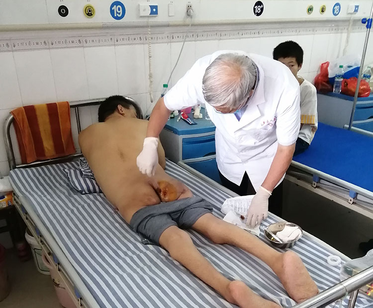 8月11日,北京榮祥再生醫(yī)學研究所副所長、《中國燒傷創(chuàng)瘍雜志》編委金黨軍教授應(yīng)邀前往江西省吉安市永新縣人民醫(yī)院對一例久治不愈壓瘡患者進行會診,金教授從查看病情到指定治療方案,最后親自示范換藥流程,全程贏得了科室醫(yī)生主任的高度認可。