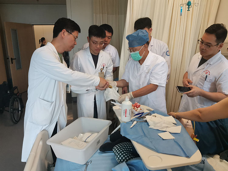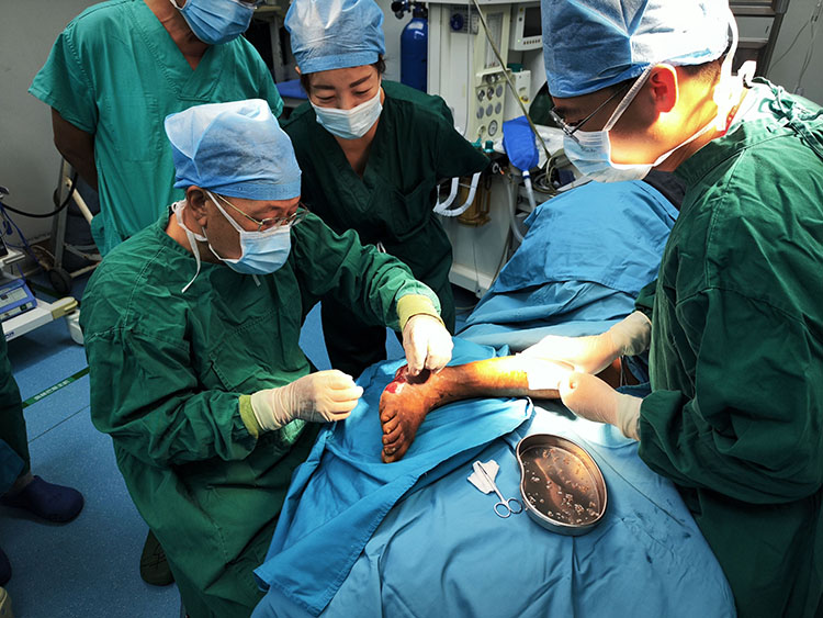 9月11日,應(yīng)廊坊市安次區(qū)醫(yī)院外科邀請(qǐng),《中國(guó)燒傷創(chuàng)瘍雜志》常務(wù)編委、燒傷創(chuàng)瘍?cè)偕t(yī)療技術(shù)臨床專家趙瑞慶,為一例四級(jí)糖尿病足合并下肢血管閉塞患者行皮簇種植術(shù),術(shù)中順利出血不多,病人安返病區(qū),得到了患者和主治醫(yī)生的感謝和贊揚(yáng)。