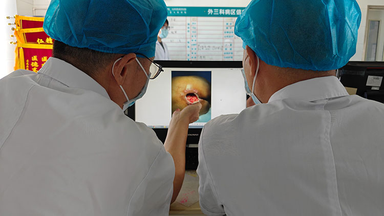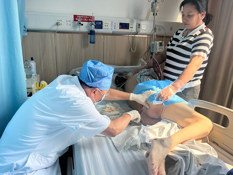 9月5日,中國(guó)中西醫(yī)結(jié)合學(xué)會(huì)燒傷專業(yè)委員會(huì)常務(wù)委員、《中國(guó)燒傷創(chuàng)瘍雜志》副總編輯王洪生主任到廣東揭陽惠來縣人民醫(yī)院分別會(huì)診了糖足,壓瘡,燒傷病人合計(jì)8位患者,并親自示范規(guī)范換藥并詳細(xì)講解下一步治療方案和注意事項(xiàng)。
