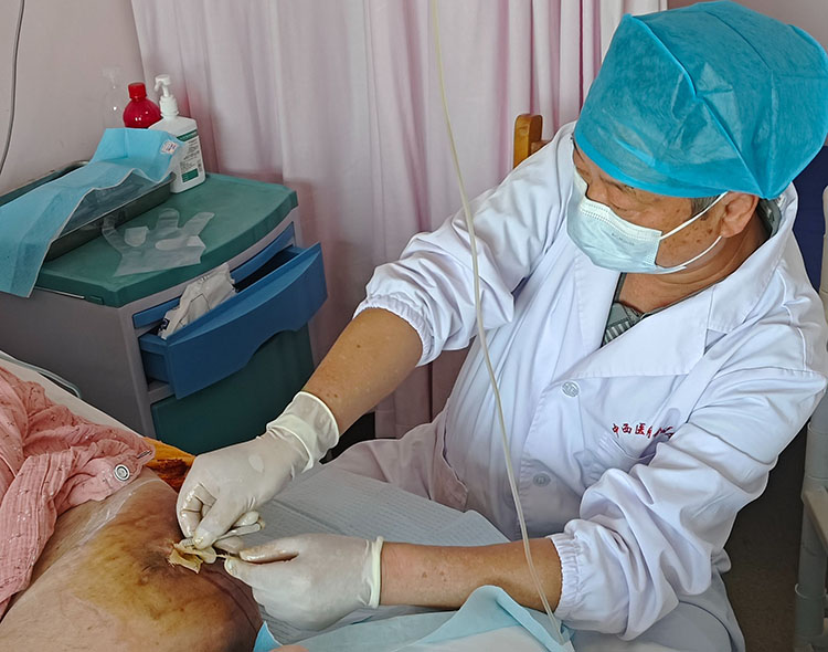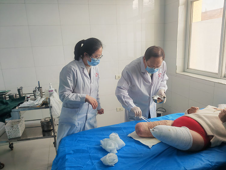 4月11日,應(yīng)雞澤縣中醫(yī)院之邀,《中國燒傷創(chuàng)瘍雜志》常務(wù)編委、燒傷創(chuàng)瘍再生醫(yī)療技術(shù)臨床專家趙瑞慶,在該院使用再生醫(yī)療技術(shù)會診了二例慢創(chuàng)患者(1例左下肢靜脈曲張潰瘍20年,1例截癱合并雙側(cè)壓瘡8年)。事后與當(dāng)?shù)蒯t(yī)務(wù)人員共同討論了下一步治療方案并在科里進(jìn)行了技術(shù)培訓(xùn),特別強(qiáng)調(diào)了靜脈曲張、壓瘡再生技術(shù)修復(fù)創(chuàng)面的注意事項,受到了當(dāng)?shù)蒯t(yī)務(wù)人員的熱情稱贊。