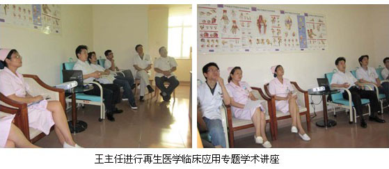 惠陽三和醫(yī)院從2006年開始在燒傷創(chuàng)瘍臨床工作中應用燒傷皮膚原位再生復原醫(yī)療技術,雖然起步晚,但該醫(yī)院于2010年3月份引進再生復原療法治療創(chuàng)瘍新技術,已將再生復原醫(yī)療技術全面應用于燒傷、骨科創(chuàng)瘍臨床工作中,為讓該醫(yī)院骨外科的醫(yī)護人員更好掌握、應用原位再生復原醫(yī)療技術救治大面積深度燒傷,2011年5月20日,中國中西醫(yī)結合學會燒傷專業(yè)委員會常委、中國燒傷創(chuàng)瘍雜志社副總編輯、北京燒傷創(chuàng)瘍研究所副所長、臨床部主任王洪生研究員應邀到該醫(yī)院做再生復原療法療法臨床應用學術講座,在該醫(yī)院骨科辦公室以“再生復原療法技術在大面積深度燒傷及難愈性創(chuàng)瘍創(chuàng)面臨床規(guī)范化處理”為題為該科室的醫(yī)護人員進行了專題講座。該院手外、骨科,以及普外科等醫(yī)護人員參加了講座,在學術講座中,王主任對燒傷的深度劃分結合臨床圖片做了生動的講解,對燒傷創(chuàng)面前期和后期的處理方法、抗感染、營養(yǎng)支持療法、臟器功能保護、并發(fā)癥防治,并結合大量的臨床圖片對各種難愈性創(chuàng)傷,潰瘍創(chuàng)面的規(guī)范處理方法與技巧做了詳細地講解。