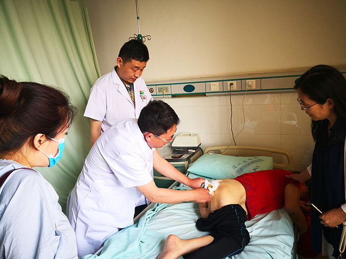 5月26日,北京榮祥再生醫(yī)學研究所副所長、《中國燒傷創(chuàng)瘍雜志》編委金黨軍、林文忠以及臨川區(qū)人民醫(yī)院骨科主治醫(yī)師鄒華文巡診了一例二級燒傷病人,金教授現場向鄒華文醫(yī)師和護士示范燒傷病人清創(chuàng)、上藥方法并詳細講解要點,還對醫(yī)師的疑惑等進行了解答,通過此次巡診交流,醫(yī)師和護士將更加了解并熟練使用再生醫(yī)療技術,從而救治更多的患者。
