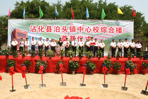 7月6日上午10時(shí),山東省濱州市沾化縣泊頭鎮(zhèn)小學(xué)內(nèi)到處洋溢著熱烈的氣氛,由美寶國(guó)際集團(tuán)董事局主席徐榮祥教授捐資一百萬(wàn),當(dāng)?shù)卣?guī)劃建設(shè)的中心小學(xué)奠基儀式在此隆重舉行。