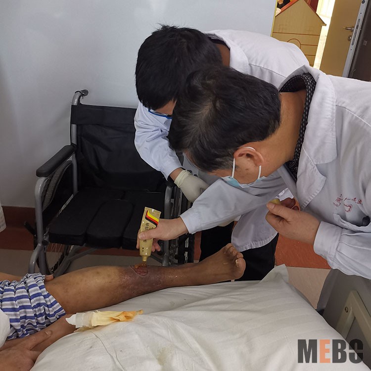 2022年2月24日,應(yīng)蕪湖市第一人民醫(yī)院燒傷科主任梁其國(guó)主任邀請(qǐng),中西醫(yī)結(jié)合會(huì)燒傷專委會(huì)委員張強(qiáng)主任會(huì)診了二例難愈合創(chuàng)面病人,其中一例特殊病例在8年前做過脾切除手術(shù), 5年前車禍至右腿脛腓骨中段骨折,術(shù)后切口感染5年才愈合,一年前出現(xiàn)左腿中部皮膚破潰久治不愈合。另一例是高血糖患者,右大腳趾壞死成為難愈合創(chuàng)面。張強(qiáng)主任現(xiàn)場(chǎng)指導(dǎo)換藥,闡述疾病發(fā)病原理并指導(dǎo)使用美寶濕潤(rùn)燒傷膏制作油紗和處理創(chuàng)面的方法??评镝t(yī)生表示受益匪淺,并在以后加強(qiáng)學(xué)習(xí),更好地為患者服務(wù)。
