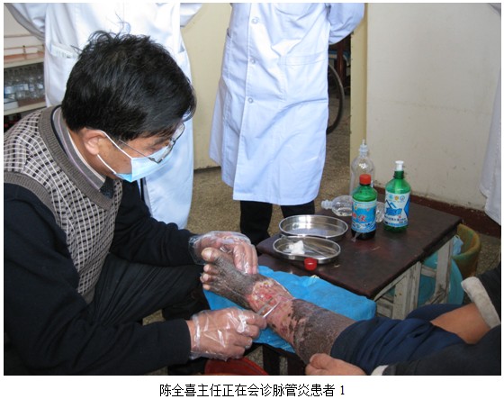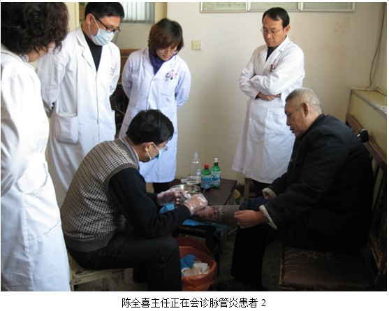 2012年11月26日,安陽市脈管炎醫(yī)院院長(zhǎng)李建芬邀請(qǐng)中國中西醫(yī)結(jié)合學(xué)會(huì)燒傷專業(yè)委員會(huì)委員陳全喜主任會(huì)診兩位脈管炎病人。