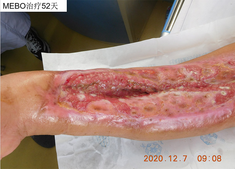 患者右上肢被機器絞傷10天、加重5天后,于10月16 日,來到北京南苑醫(yī)院燒傷創(chuàng)瘍科,當時右上肢廣泛皮膚軟組織絞挫撕脫傷并感染、右側(cè)橈骨中遠段多發(fā)開放性骨折、右尺骨莖突骨折。北京南苑醫(yī)院燒傷創(chuàng)瘍科采用了燒傷創(chuàng)瘍再生醫(yī)療技術,在原位培養(yǎng)皮膚組織器官再生,并配合微粒皮移植術以加速創(chuàng)面愈合。這位在外院多家大醫(yī)院均被告知需要截肢的病人在南苑醫(yī)院不僅成功保住了肢體,還恢復了部分功能并在進一步康復中,已于12月10出院。