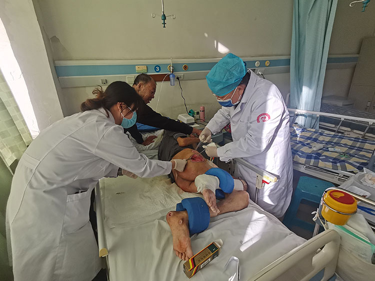 2024年12月27日,應(yīng)同煤二醫(yī)院、懷仁市中醫(yī)院邀請,《中國燒傷創(chuàng)瘍雜志》常務(wù)編委、燒傷創(chuàng)瘍再生醫(yī)療技術(shù)臨床專家趙瑞慶,在該醫(yī)院六例慢性創(chuàng)面病人(1例燒傷,5例多部位嚴(yán)重壓瘡,其中3例深度感染),會(huì)診結(jié)束后,會(huì)同科室人員展開重病病例討論,強(qiáng)調(diào)注意事項(xiàng),制定進(jìn)一步治療方案,受到當(dāng)?shù)蒯t(yī)護(hù)人員的熱情稱贊。
