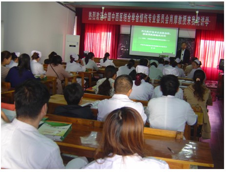2012年10月18日宣城市再生醫(yī)療技術(shù)培訓(xùn)班如期舉辦。學(xué)術(shù)活動(dòng)由安徽技術(shù)推廣辦事處和宣城市中醫(yī)院聯(lián)合舉辦。宣城市中醫(yī)院是經(jīng)國(guó)家批準(zhǔn)的二級(jí)非營(yíng)利性醫(yī)療機(jī)構(gòu),應(yīng)用再生醫(yī)療技術(shù)已經(jīng)二十余年。會(huì)議由該院張書(shū)記主持,張書(shū)記是應(yīng)用MEBT/MEBO多年,并積累了豐富臨床經(jīng)驗(yàn)的專家。來(lái)自大外科主任兼業(yè)務(wù)院長(zhǎng)唐院長(zhǎng)、骨科裴主任、婦產(chǎn)科楊主任、糖尿病科楊主任、內(nèi)科護(hù)士長(zhǎng)等相關(guān)專業(yè)醫(yī)護(hù)人員近100人聆聽(tīng)了肖摩教授“中西醫(yī)結(jié)合創(chuàng)面治療新進(jìn)展”學(xué)術(shù)報(bào)告。大量真實(shí)的臨床病例圖片和圖像,將再生復(fù)原療法在難愈性創(chuàng)瘍創(chuàng)面、潰瘍創(chuàng)面、糖尿病足、褥瘡創(chuàng)面的規(guī)范化處理方法與技巧、注意事項(xiàng)等進(jìn)行了細(xì)致地講解,并對(duì)婦產(chǎn)科和肛腸科遇到的棘手創(chuàng)面進(jìn)行了講解。會(huì)議結(jié)束后肖摩教授還應(yīng)骨科邀請(qǐng),到病房會(huì)診癌癥潰瘍的患者。