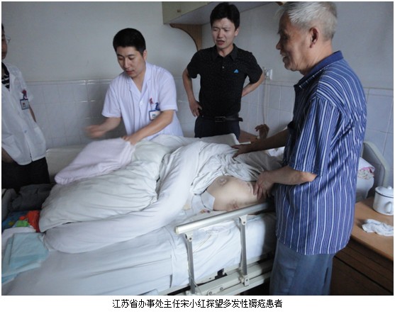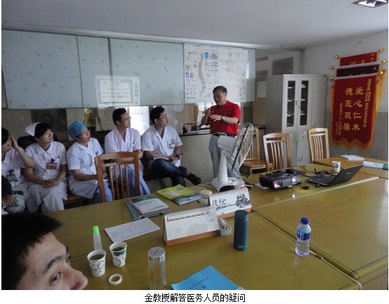 2012年6月29日下午烈日炎炎,應(yīng)德安醫(yī)院的邀請中國中西醫(yī)結(jié)合學(xué)會燒傷專業(yè)委員會常委、中國燒傷創(chuàng)瘍科技中心臨床醫(yī)療部金黨軍主任,江蘇省辦事處主任宋小紅,工作人員李長舜一行,為該院進(jìn)行了《皮膚原位再生復(fù)原醫(yī)療技術(shù)在創(chuàng)面處理中的應(yīng)用》系統(tǒng)的學(xué)術(shù)講座,并對創(chuàng)瘍病人進(jìn)行會診。