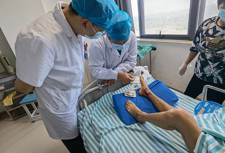 2025年7月1-2日,《中國燒傷創(chuàng)瘍雜志》編委、燒傷創(chuàng)瘍再生醫(yī)療技術(shù)臨床專家張強(qiáng),先后應(yīng)邀來到桐城市人民醫(yī)院、懷寧縣人民醫(yī)院,張強(qiáng)主任分別對兩例慢性創(chuàng)患者進(jìn)行了會診,張強(qiáng)主任親自示范再生醫(yī)療技術(shù)換藥流程,強(qiáng)調(diào)了換藥過程中的禁忌和注意事項(xiàng),并交流了綜合治療方案。再生醫(yī)療技術(shù)是中西醫(yī)結(jié)合創(chuàng)面治療方案的典范,其推廣應(yīng)用將極大造福廣大燒傷及慢創(chuàng)患者!